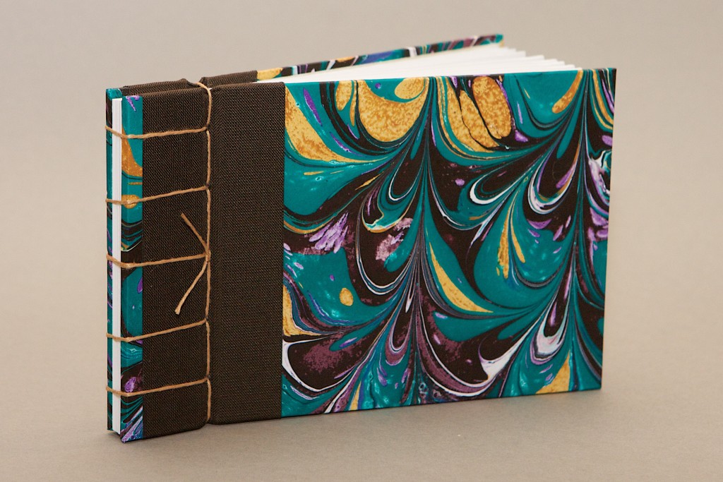 It features an exposed side stitch which can be embellished with beads, buttons, and even botanicals or personal charms. We’ll cover the traditional Japanese 4-hole stitch pattern, as well as other decorative variations. Both soft and hardbound versions will be completed. Exciting book cloth, handmade marbled and paste papers, linen threads and ribbons, and all you’ll need will be provided for inspiration.