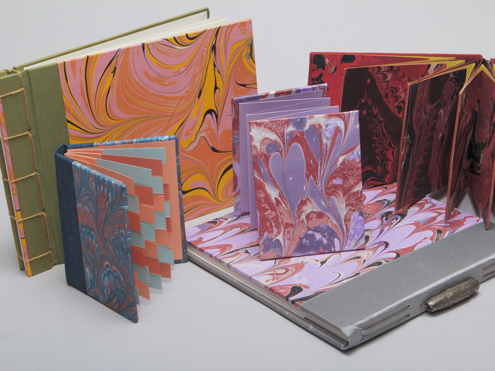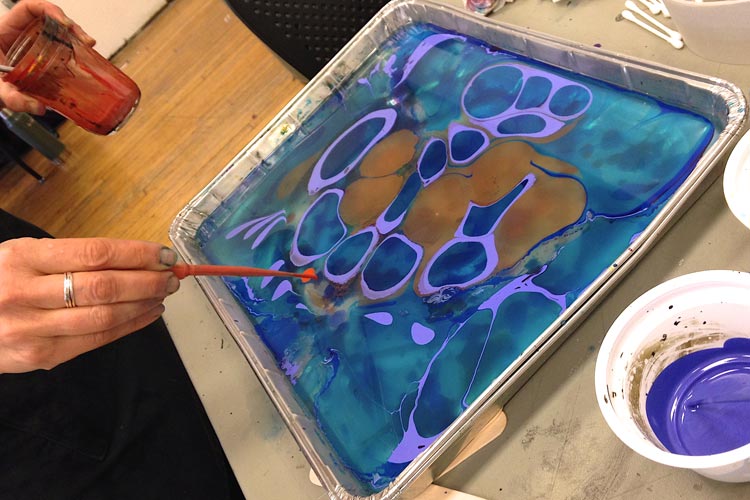 This technique can produce lovely figurative designs of fish, flowers, birds, and abstract shapes – or go with the traditional combed patterns. Your floating designs may be free-form, combed, or even blown.