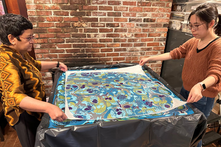Spend a day creating unique silk scarves with Turkish-style marbling. This decorative art is both a joy in the doing and the having.